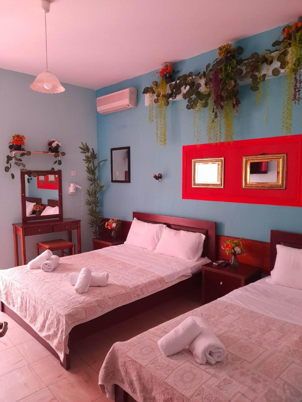 Deluxe Double Room. The spacious double room offers air conditioning and a wardrobe, as well as a private bathroom boasting a shower. Featuring a terrace, this double room also provides heating and a flat-screen TV. The unit has 2 beds. ;