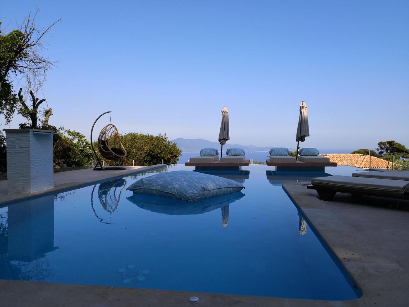 Villa with Private Pool. Guests will have a special experience as this villa features a pool with a view and a fireplace. Featuring a private entrance, this air-conditioned villa is comprised of a kitchen, 3 bedrooms and 3 bathrooms with a shower and a hairdryer. In the well-fitted kitchen, guests will find a refrigerator, a dishwasher, kitchenware and an oven. Boasting a terrace with sea views, this villa also offers a washing machine and a flat-screen TV with satellite channels. The unit offers 4 beds.
